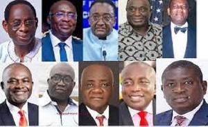 Alan Kyerematen, Dr. Owusu Afriyie Akoto, Kennedy Agyapong, Joe Ghartey, Kwabena Agyei Agyepong, a former party general secretary, Kwadwo Poku, an energy expert named Boakye Agyarko, Kofi Konadu Apraku, Francis Addai Nimoh, and a former representative for Mampong are some of the former cabinet members.