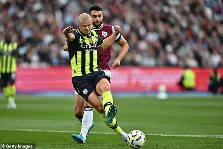 His three-goal haul at the London Stadium moves the Norwegian onto seven strikes from just three top-flight appearances, as City attempt to become the first-ever team to win five consecutive league titles.