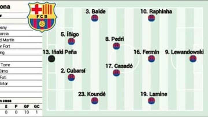 Iñaki Peña, who has done nothing to warrant being substituted, will remain in goal. In defense, Flick is expected to stick with his most-used lineup this season, featuring Koundé and Balde on the flanks, with Cubarsà and Iñigo MartÃnez as the central pairing. In midfield, Casadó will partner with Pedri to handle both defensive and creative duties.