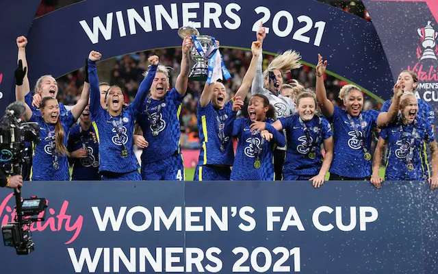 Emma Hayes: “I’m extremely proud of everyone in our organisation. Our performance was out of this world today. we were dominant from start to finish. I was upset we weren’t up by more than one at half-time but it was convincing in the end. That’s the best performance I’ve seen from Fran [Kirby], she ran the show. The midfield was set up to do a job and allow Fran and Sam [Kerr] to go and play. It’s nice to paint Wembley blue tonight. It’s a Chelsea day. The fans deserve that. Winning the treble is an amazing achievement and I will sit down and enjoy that this evening. Women’s football was banned 100 years ago. I said to the girls before the game: today we play for everyone who’s made the women’s game what it is. Women’s football is out livelihood but it’s also our passion and today that win was for every woman who’s been involved in women’s football in this country.â€