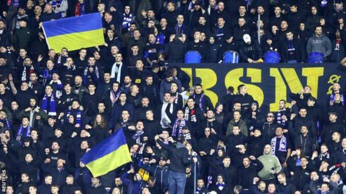 Dinamo Zagreb fans hoisted a banner reading "Support to the People of Ukraine" after their 1-0 home win against Sevilla.