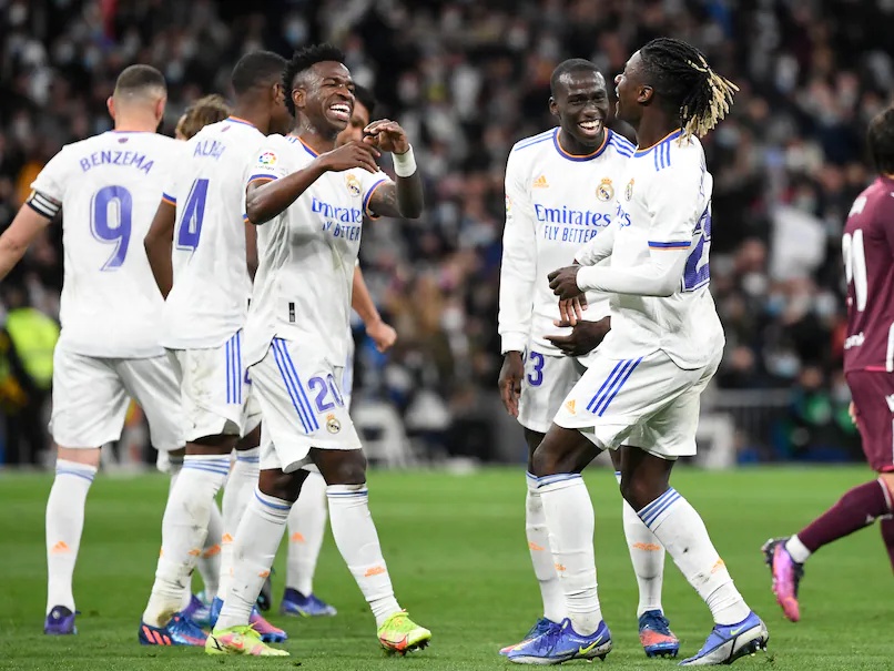 Real Madrid thrashed Real Sociedad 4-1 on Saturday to move eight points clear of Real Sociedad at the top of La Liga. Two stunning long-range efforts from Eduardo Camavinga and Luka Modric turned the game on its head at the Santiago Bernabeu, before a Karim Benzema penalty and a tap-in for Marco Asensio capped an emphatic triumph. Camavinga's goal, his second for Madrid, came at a good time, since the 19-year-old could be forced to start against PSG on Wednesday, with Toni Kroos out with a hamstring strain.
