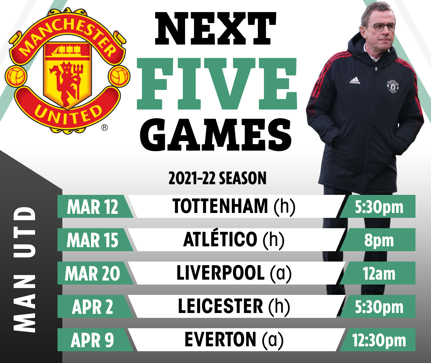 Ralf Rangnick's side, on the other hand, has a difficult five-match schedule ahead of them, including a tantalizing trip to Anfield later this month.