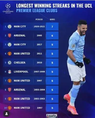 Calistosports will recount the ten longest winning streaks in Champions League history by Premier League clubs in his piece. Please follow me to learn about the world's longest unbeaten streaks.