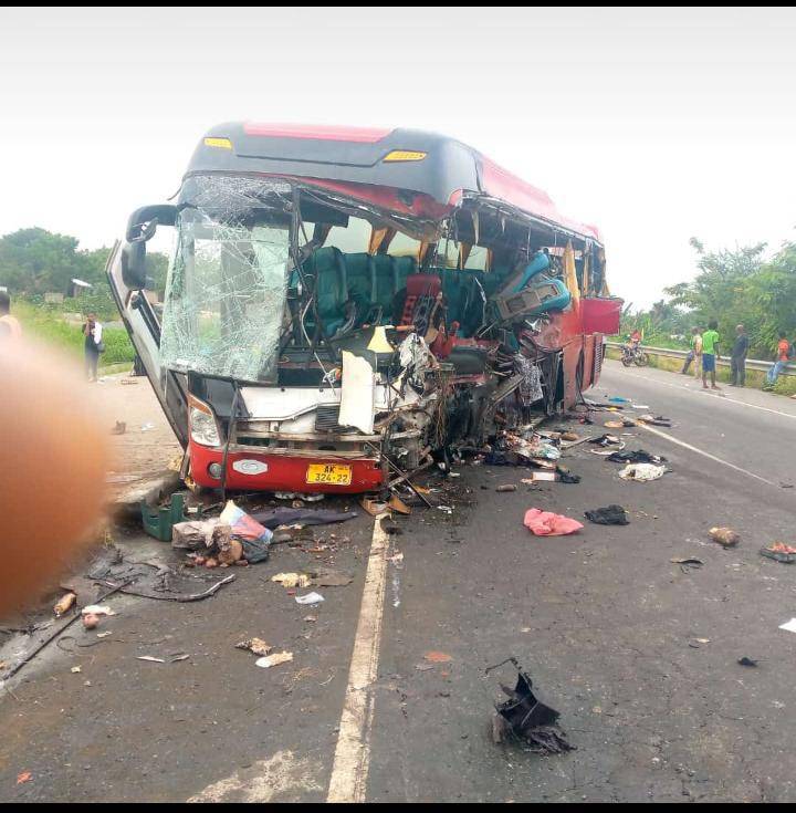 The bus is said to be transporting the students from Sunyani towards Accra but on reaching a section of the Asuboi road, the driver failed to observe traffic ahead, He was alleged to be sleeping.