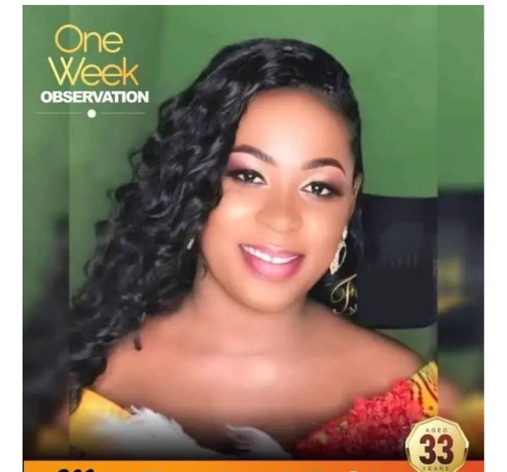 A one-week observation for the late Theodorah will be conducted on Tuesday, according to the post.