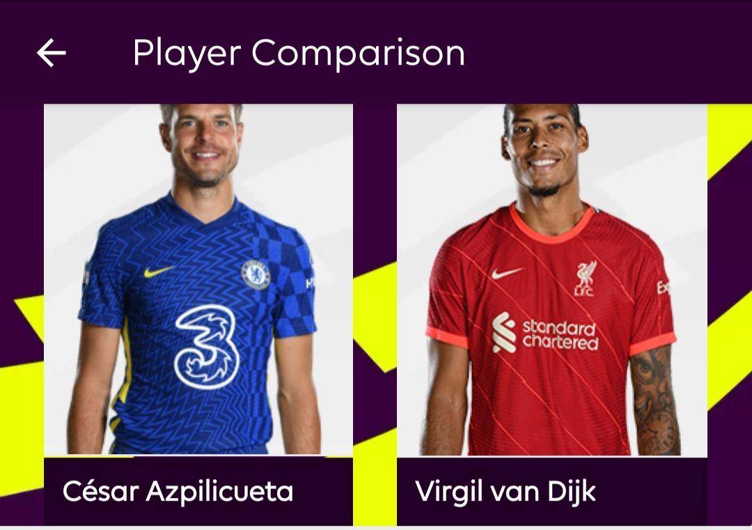 This is a match statics accumulated comparison between two defenders in the English Premier League, Ceaser Azpilicueta and Virgil Van Dijk.
