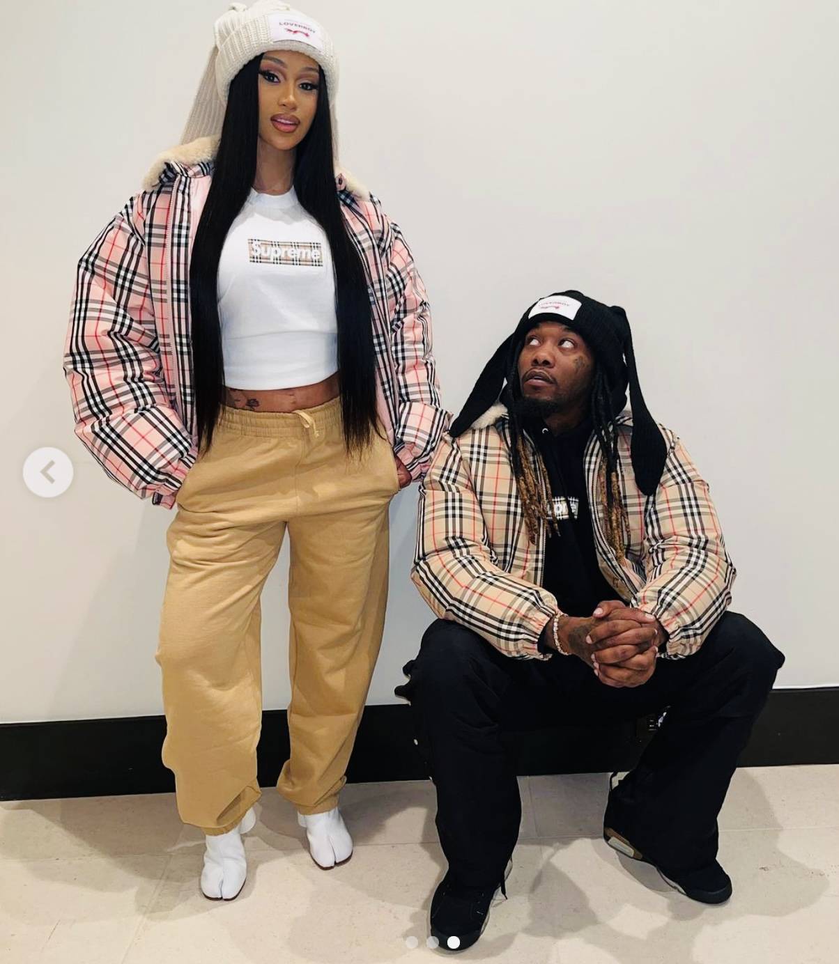 RAPPERS AND COUPLE CARDI B AND OFFSET STEP OUT DRIPPED IN MATCHING BURBERRY JACKETS FOR THEIR MOST RECENT DATE NIGHT .