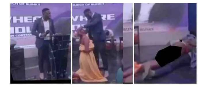 In a new viral video, a pastor removes a lady’s beads and sleeps on top of her for deliverance during a church session.