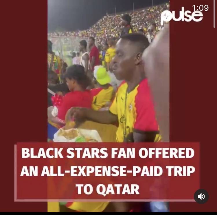 A Ghanaian and black star supporter who was spotted shedding tears and unable to hear when Ghana drew with the super Eagles of Nigeria has received a lifetime experience favor as he gets a fully sponsored trip to Qatar to witness the world cup.