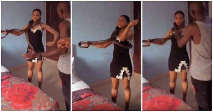The final straw was when the large snake began to slither its way down her back. This compelled the lady to tell the director to take it away from her.