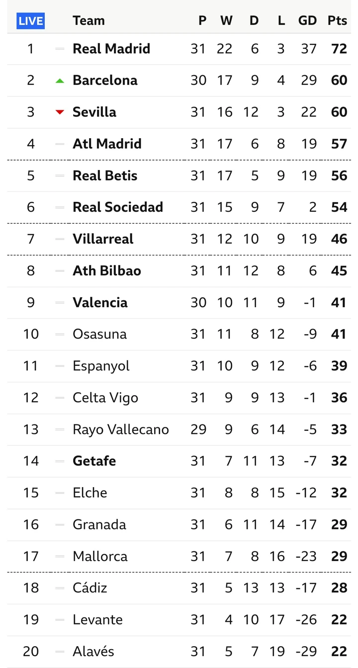 After Barca won 3-2 to reclaim second place in La Liga, here is the final table and match review.