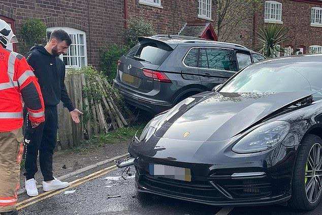 The vehicle, valued at £90,000, was damaged on the driver's side, with two automobiles visibly battered down a tight route, according to photos from the scene.