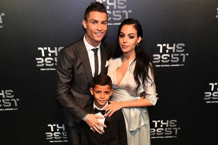 File: Ronaldo with wife and their older son Cristiano Junior.