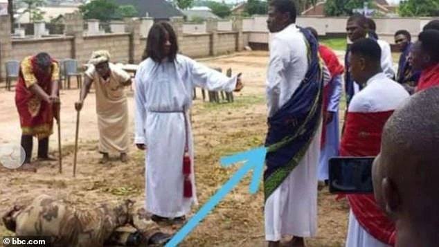 A university student died while acting in a recreation of Jesus's crucifixion - and onlookers thought it was part of the act.