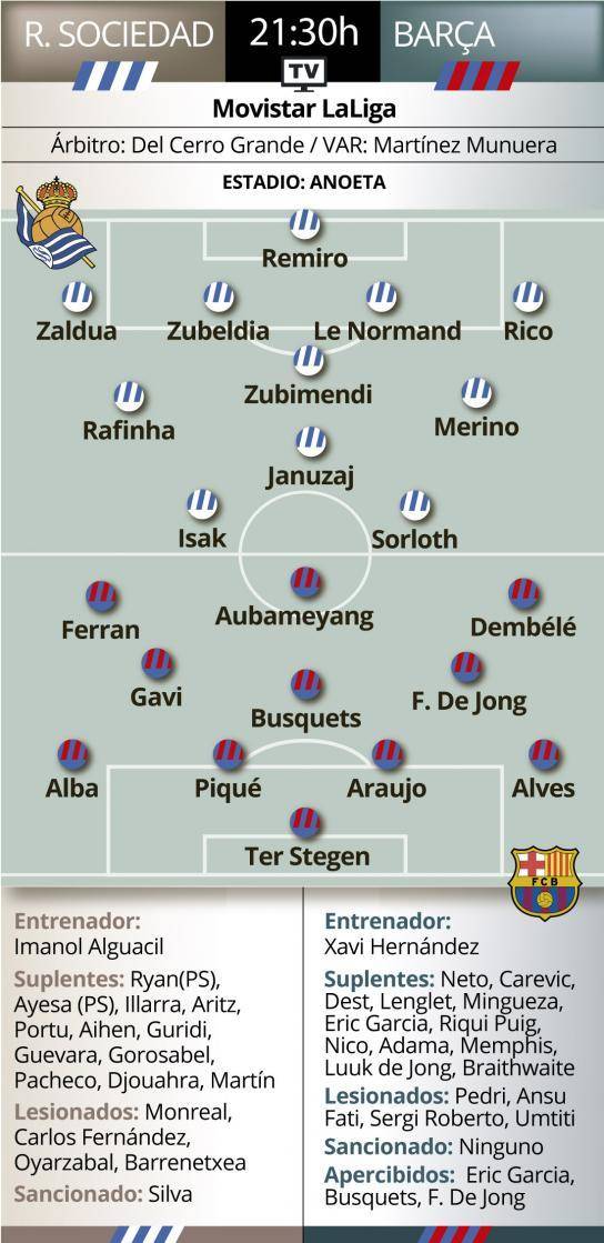 Sergio Busquets will moor the midfield with Frenkie de Jong and Gavi either side of him. Pierre-Emerick Aubameyang will lead the line flanked by Ousmane Dembele and Ferran Torres.