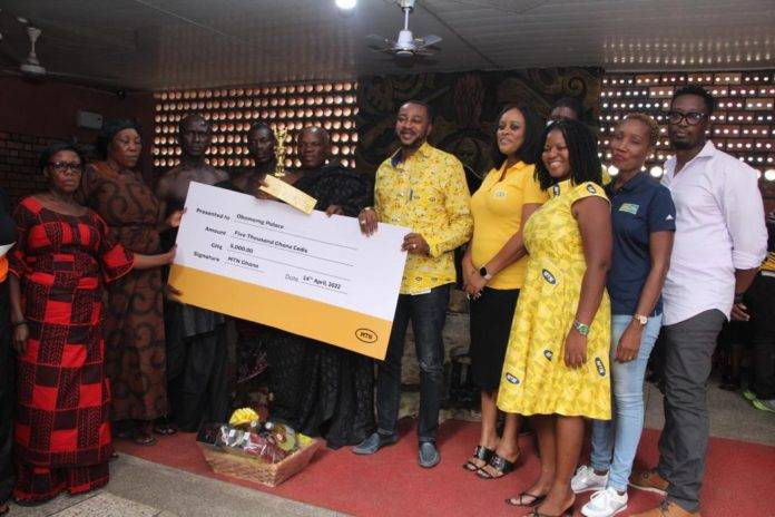 MTN gave the Kwahu Traditional Council in Abene $10,000 in cash, $1,000 in airtime, and a drinks hamper, while the chiefs and elders of Obomeng, Mpraeso, and Abetifi each received $5,000 in cash, $500 in airtime, and a drinks hamper.