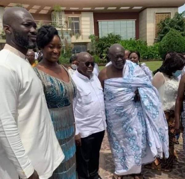 On Saturday, April 23, 2022, Edwina Nana Dokua Akufo-Addo, one of President Akufo-daughters, Addo's married in a white wedding in the Presidency.Edwina married the love of her life, Kwabena Jumah, son of GIHOC Distilleries Company Limited's Managing Director, Maxwell Kofi Jumah aka Kofi Ghana. It will be recalled that photographs and videos went viral last year in October when the two lovebirds hosted a special family introduction at the Presidential Villa, which was attended by their respective families and top NPP officials.