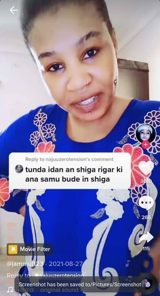 Tananan a Tiktok da follower sama da dubu 36, ba abinda take yadawa sai batsa da iskan"ci, bidiyon da ta yi cewa wani yana goga mata gabansa a Harami karya ne da kuma sharri, ita ta tsara abinta