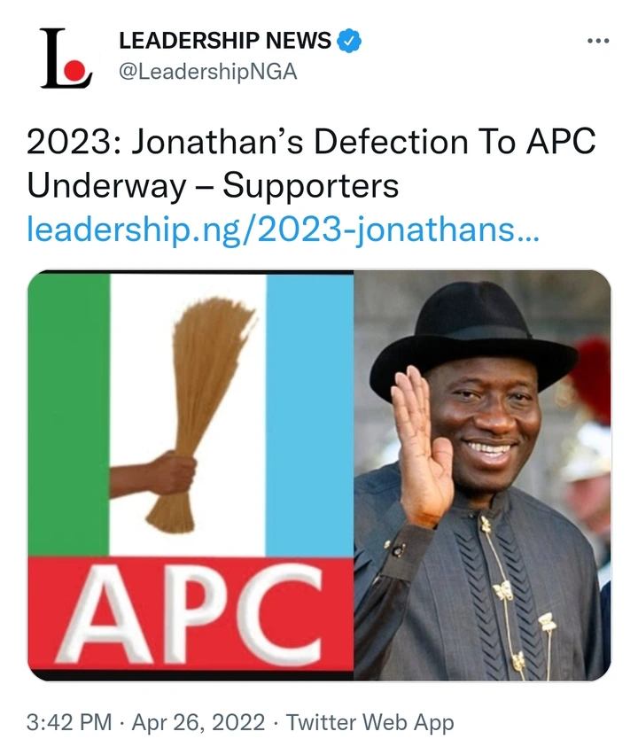 Supporters of former President Goodluck Johnathan have said plans are underway for him to officially defect to the ruling All Progressives Congress (APC) ahead of the 2023 general elections.