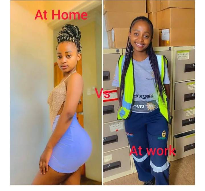 A little youngster has created a ruckus via virtual entertainment in the wake of posting photographs of her at work and at home. Twitter client, who is 23-years of age and works for a street firm shared photographs of herself as she leaves the workplace and what she resembles when she returns home.