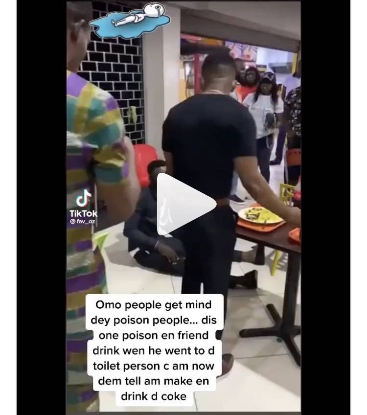 In a trending video, an unidentified man was caught at a restaurant trying to poison a friend's coca drink for the reason unknown yet. The incident happened at a restaurant in Lagos where the man and his friends had gone to get some food and drink. Reports suggest that the culprit laid a substance suspected to be a poison in the drink of his friend after he had excused himself to use the washroom.