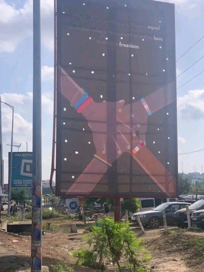 "Over the weekend, our attention was directed to illegality that contradicts Articles 11 and 26 of the Ghanaian Constitution, which speak of Ghana's cultural sovereignty. A billboard supporting LGBTQ activities has been installed along the highway, which we spotted.