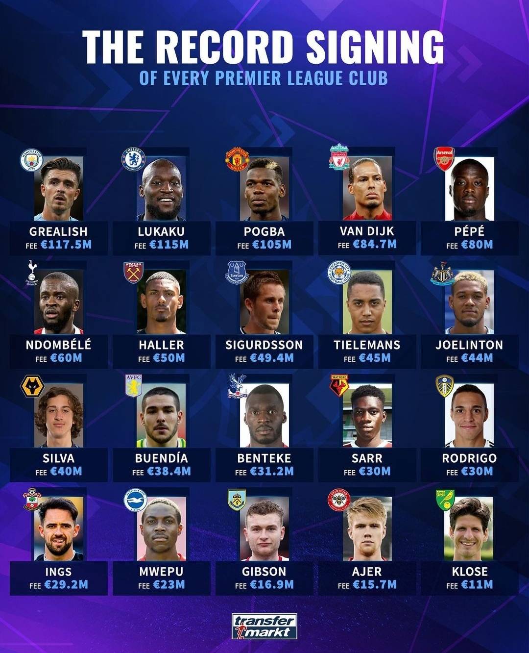 Over the next several months, we could see some new transfer records established, but who is each team's current record buy?
