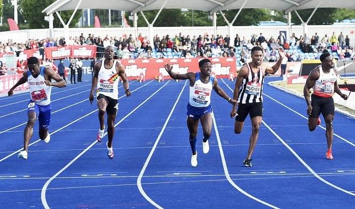 Azu, 21, clocked 9.90 to beat Prescod’s 9.94 and Hughes’ 9.97 as Jona Efoloku and Harry Aikines-Aryeetey were fourth and fifth in 10.12 while former winner Ojie Edoburun was disqualified for a false start.