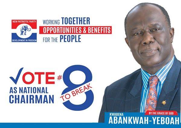 In the next National Delegates Conference of the New Patriotic Party, Kwabena Abankwa Yeboah is listed as the eighth candidate on the ballot (NPP).