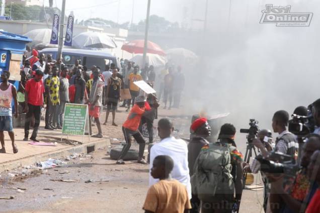 Police and protesters exchanged stones and tear gas during a standoff in the afternoon as the protest descended into chaos.