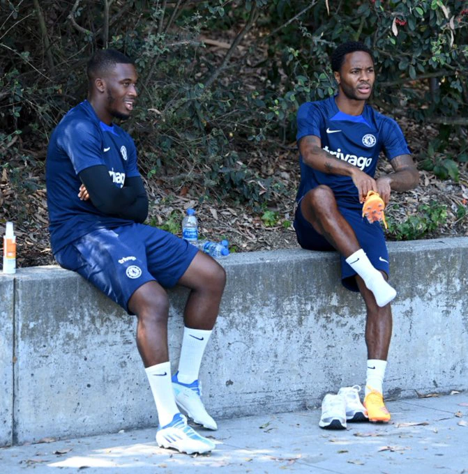 For the first time ever, Sterling has been spotted working out with his new teammates.In a few photos, Reece James can be seen smiling broadly while working out with his England and new club teammate. Another image shows Sterling chilling with Callum Hudson-Odoi, and other others show him practicing with the team and getting to know his new teammates.