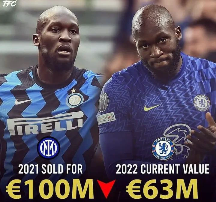 Belgian international Romelu Lukaku's transfer from Inter Milan to Chelsea in 2021 was estimated at €100 million; his current value in 2022 is €63 million.