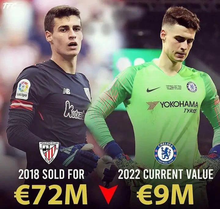 - Spanish shot-stopper Kepa Arizaballaga, who moved from Athletic club to Chelsea in 2018, had a value estimated at €72 million; his current value is estimated to be €9 million in 2022.