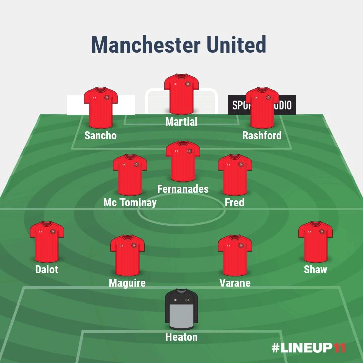 Heaton; Dalot, Maguire, Varane, Shaw; McTominay, Fred; Sancho, Fernandes, Rashford, Martial