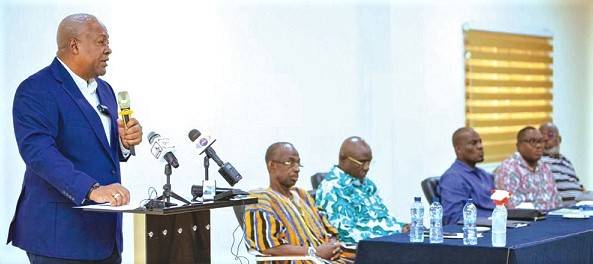 Yesterday, Mr. Mahama said the current status of the economy emphasised the need for more examination of the administration and more effective exercise of supervision. He was speaking at the conclusion of a three-day retreat for members of the Minority Caucus in Parliament in Ho. He emphasised that the frequently quoted GH25 billion spent on the cleanup of the banking industry was a self-inflicted decision driven by politics.