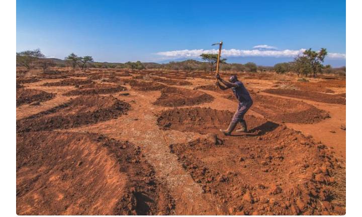 Bunds are simple structures that have been used for thousands of years to keep a liquid in or out. In Kuku, southern Kenya, they have been used as a water management strategy to revive and regreen degraded land. Non-profit Justdiggit worked in collaboration with the Maasai Wilderness Conservation Trust and the local Maasai community to restore arid, overgrazed land, digging over 150,000 bunds. courtesy Justdiggit