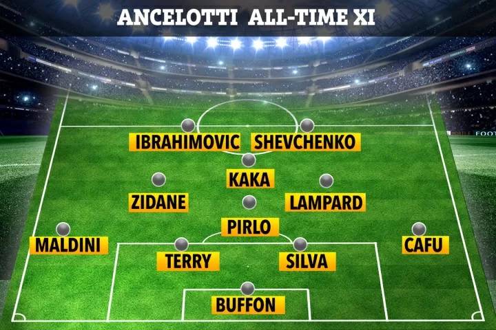 Ancelotti's XI is based on players he coached, prior to those he worked with at Real Madrid, Bayern Munich, Napoli, Everton, and his second spell at the Bernabeu.