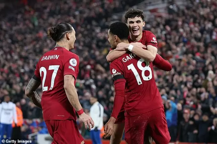 The way the teenager tormented Everton - running 11km, winning all his tackles and nicking the ball back to spark the move which led to Cody Gakpo's first Liverpool goal - vindicated Klopp's decision to leave James Milner and Naby Keita on the bench with Thiago out injured.