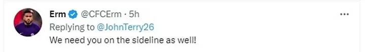 'Join him Captain,' wrote one, while others urged Chelsea to 'get the band back together' as they 'need Terry on the sideline as well.'