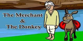 The duo set out on their trip to the market a third time. On reaching the river, the donkey very cleverly fell into the water again. But now, instead of the load becoming lighter, it became heavier.