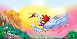 There lived a heron by a big lake. He used to catch fish and eat them. But he had become old and could not catch fish like before. He went without food for many days together.