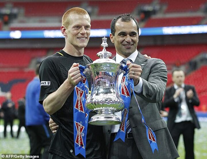 It was emotional for the midfielder as he walked around the perimeter of the pitch, walked up to the royal box where he'd collected his winners' medal and sat in the dressing-room where manager Roberto Martinez did his team talk.