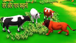 However, the cows were too clever to separate from each other. They knew that if they were together, no predator could attack them. The lion lay in ambush nearby for two or three days. But the cows continued to remain together, and wouldn't separate from each other. The lion became impatient. It thought of a plan. It went towards the cows, greeted them and said, "How are you my friends? Are you fine? I have been busy lately, so could not come and visit you. Today I made up my mind to pay you a visit."