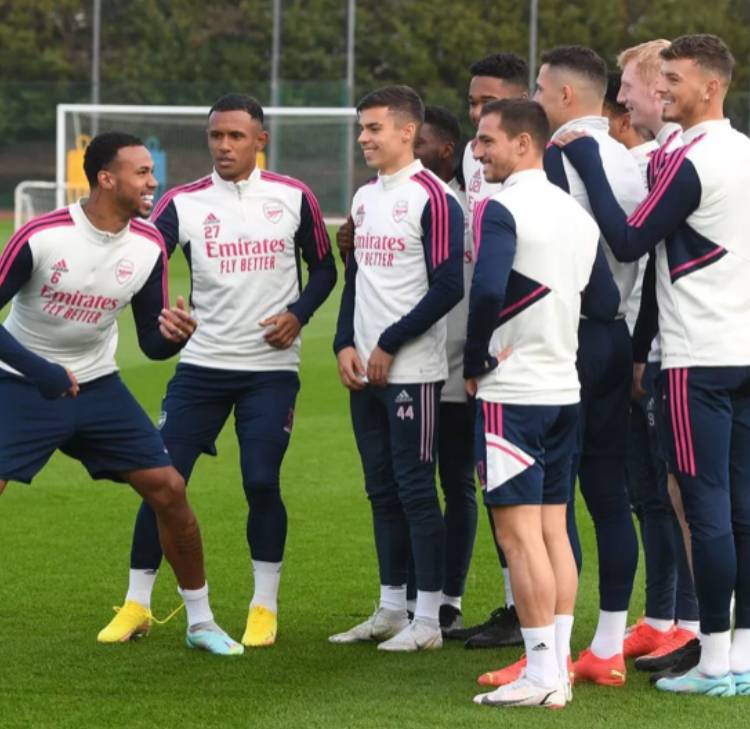 Gabriel Jesus, Mikel Arteta, Reiss Nelson and Eddie Nketiah are all snapped with huge grins on their faces. Amid their Premier League title battle, it is certainly important that the players continue to enjoy their football as that was what got them in this position in the first place.