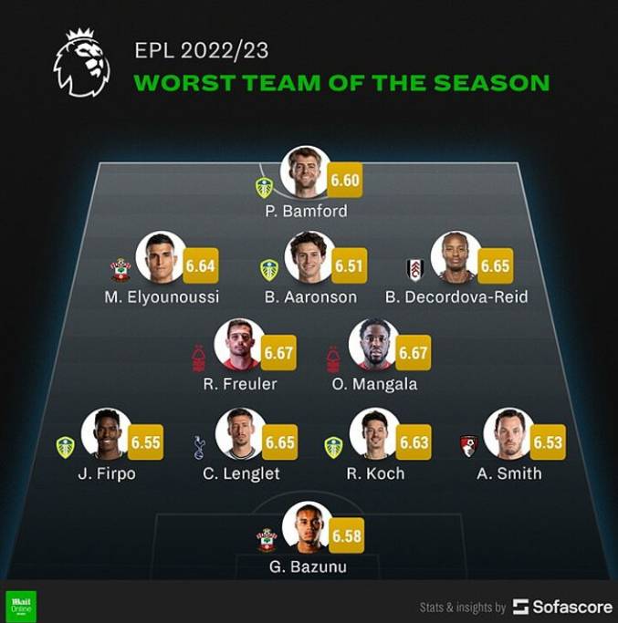 Just as there have been winners from this season's Premier League campaign, there have invariably been losers, and the statisticians at Sofascore have been quick off the mark to draw up a starting XI that no player would want any part in.