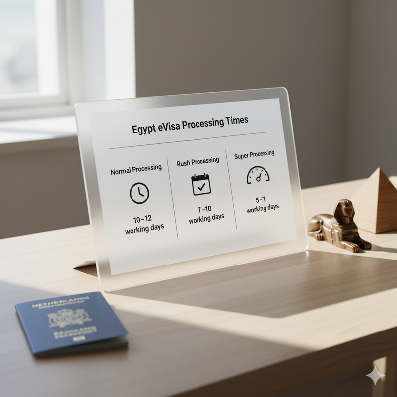 - Rush Processing Time: If an applicant is a Netherlands citizen and is in need of an eVisa on an urgent basis, then he or she may choose a rush processing time as their option. It is a period considerably shorter than the usual one during which they carry out the operations and, therefore, it is a time designed for quickly providing the eVisa. Usually, this period is between 7 and 10 working days for Egypt eVisa for citizens of the Netherlands. Usually, being able to take advantage of this kind of service implies paying an extra fee.