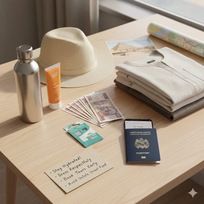 - Drink plenty of water to help keep your body cool, especially in Egypt's hot climate.