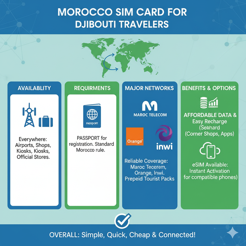 Yes, it is very easy for travelers from Djibouti to get a SIM card in Morocco. The process is simple, quick, and tourist-friendly. Here are the key points: