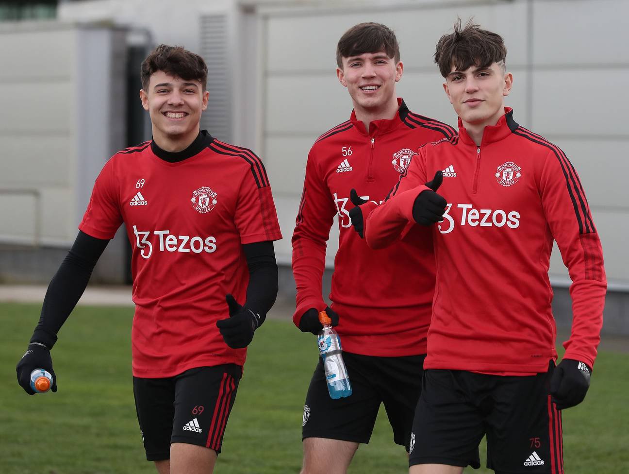 Manchester United's Alejandro Garnacho trains with Charlie McNeill and Marc Jurado | Manchester United